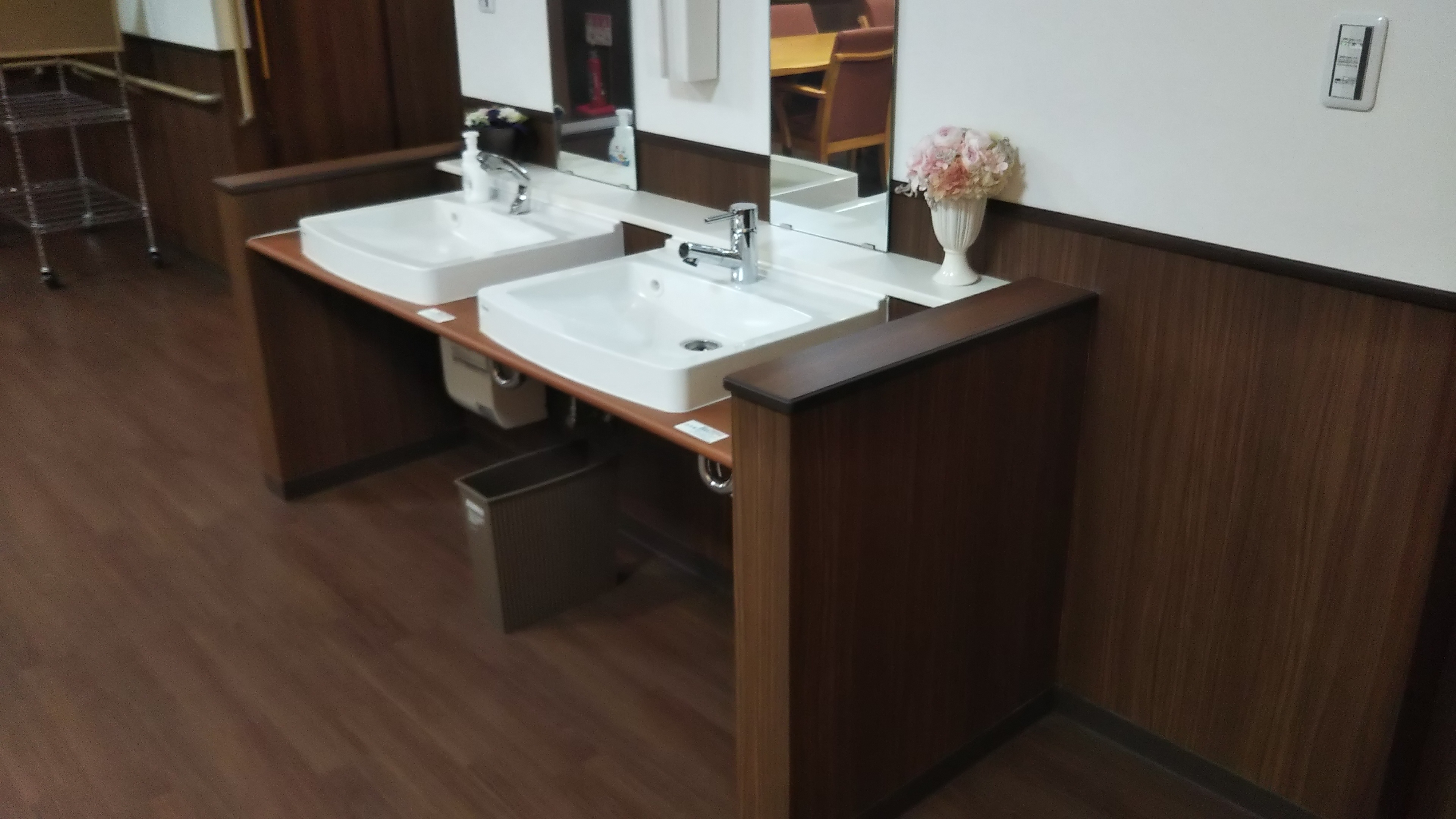 食堂及び機能訓練室と静養室が並ぶ廊下に3箇所のトイレをご用意しております。